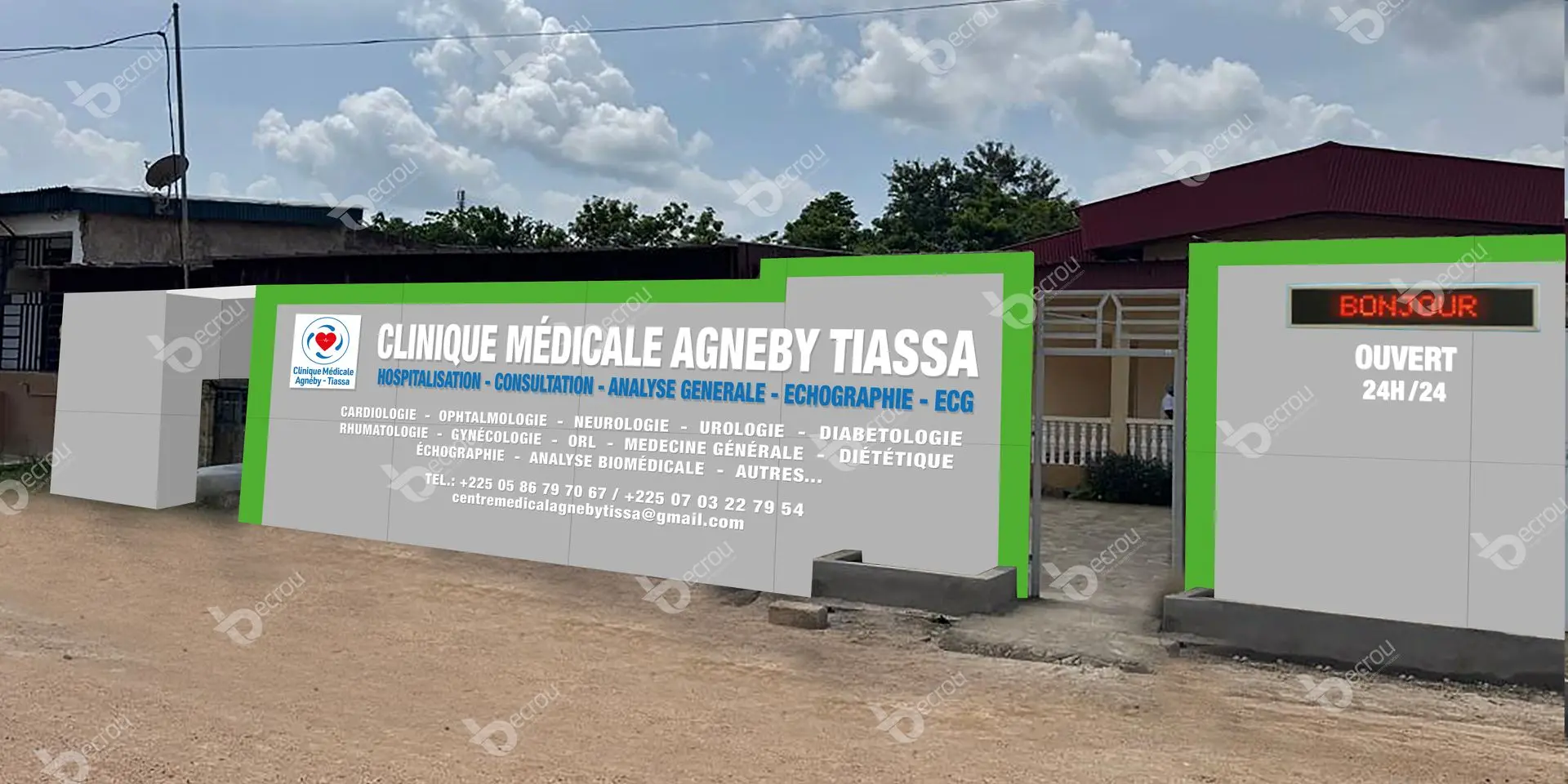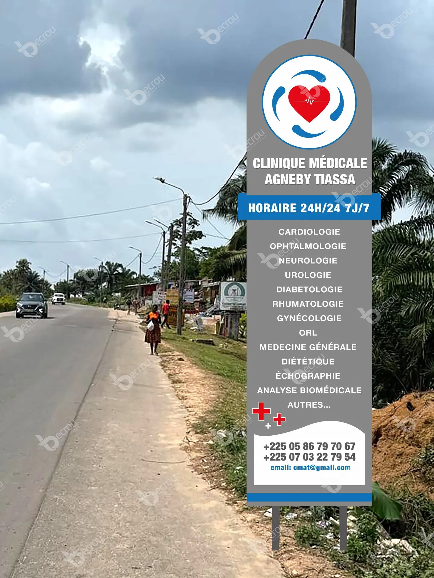 réalisation de totems publicitaires modernes et d'enseignes pour Clinique